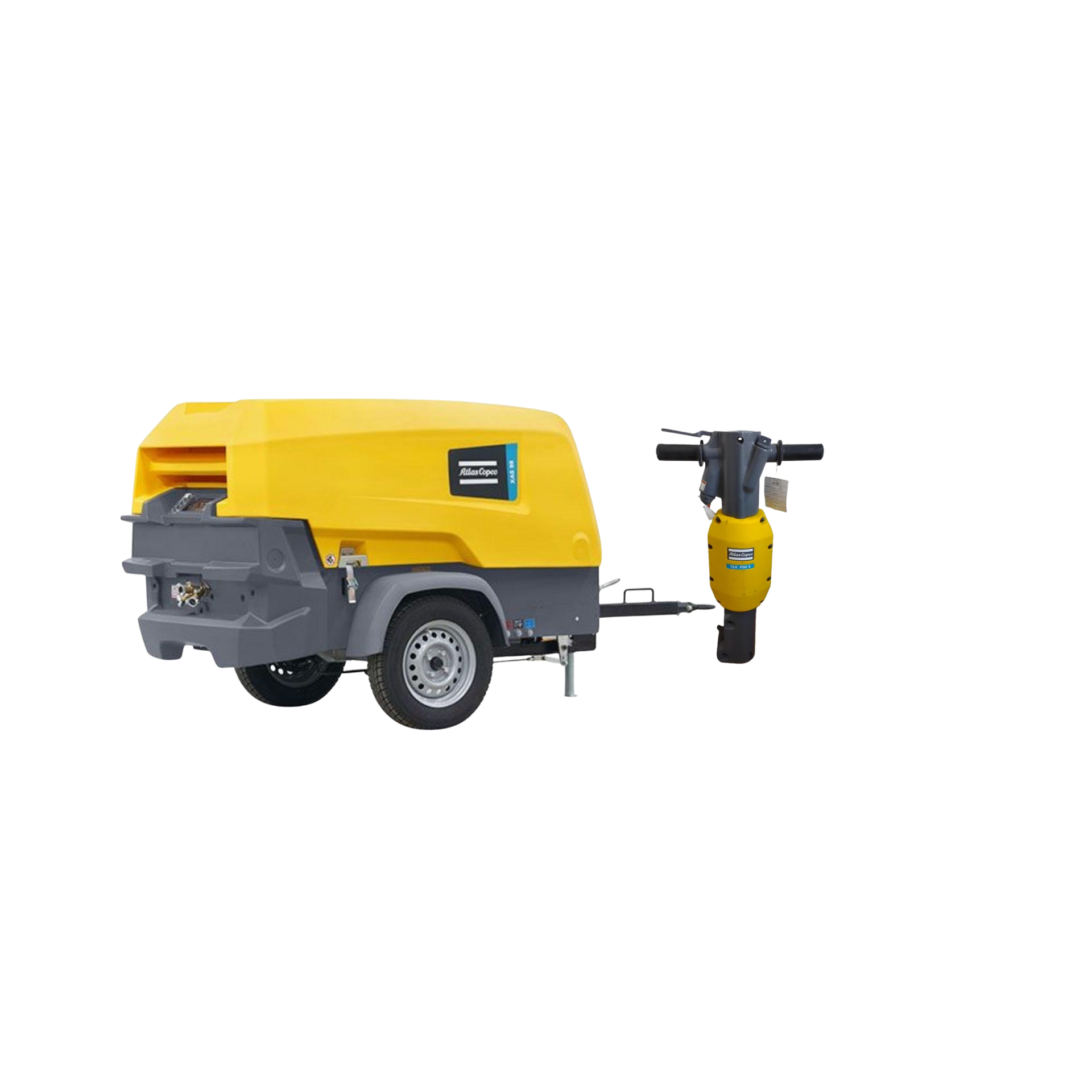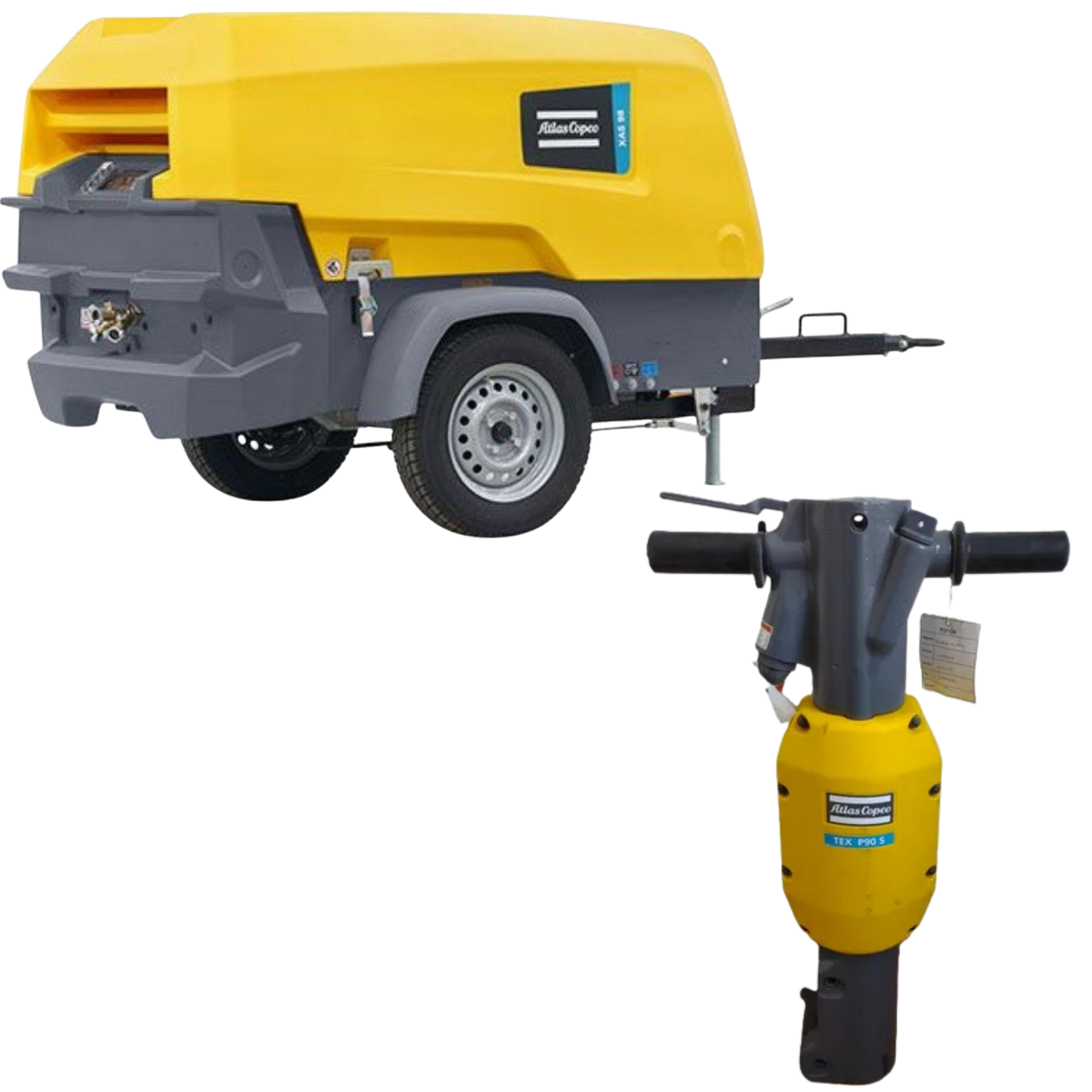 Un compresor + rompedora neumática. Paquete completo para demolición y pavimentación. Sin complicaciones.